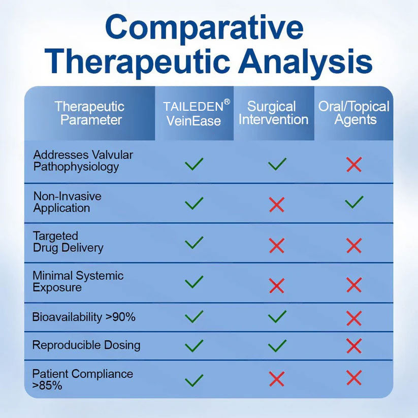 VeinEase represents the first commercially available transdermal phytotherapy system specifically designed to address venous valvular insufficiency through localized botanical intervention. Unlike systemic treatments that dilute active compounds throughout the circulatory system or topical applications that cannot penetrate the dermal barrier, our microneedle delivery system ensures concentrated therapeutic compounds reach the target tissue with minimal systemic exposure.